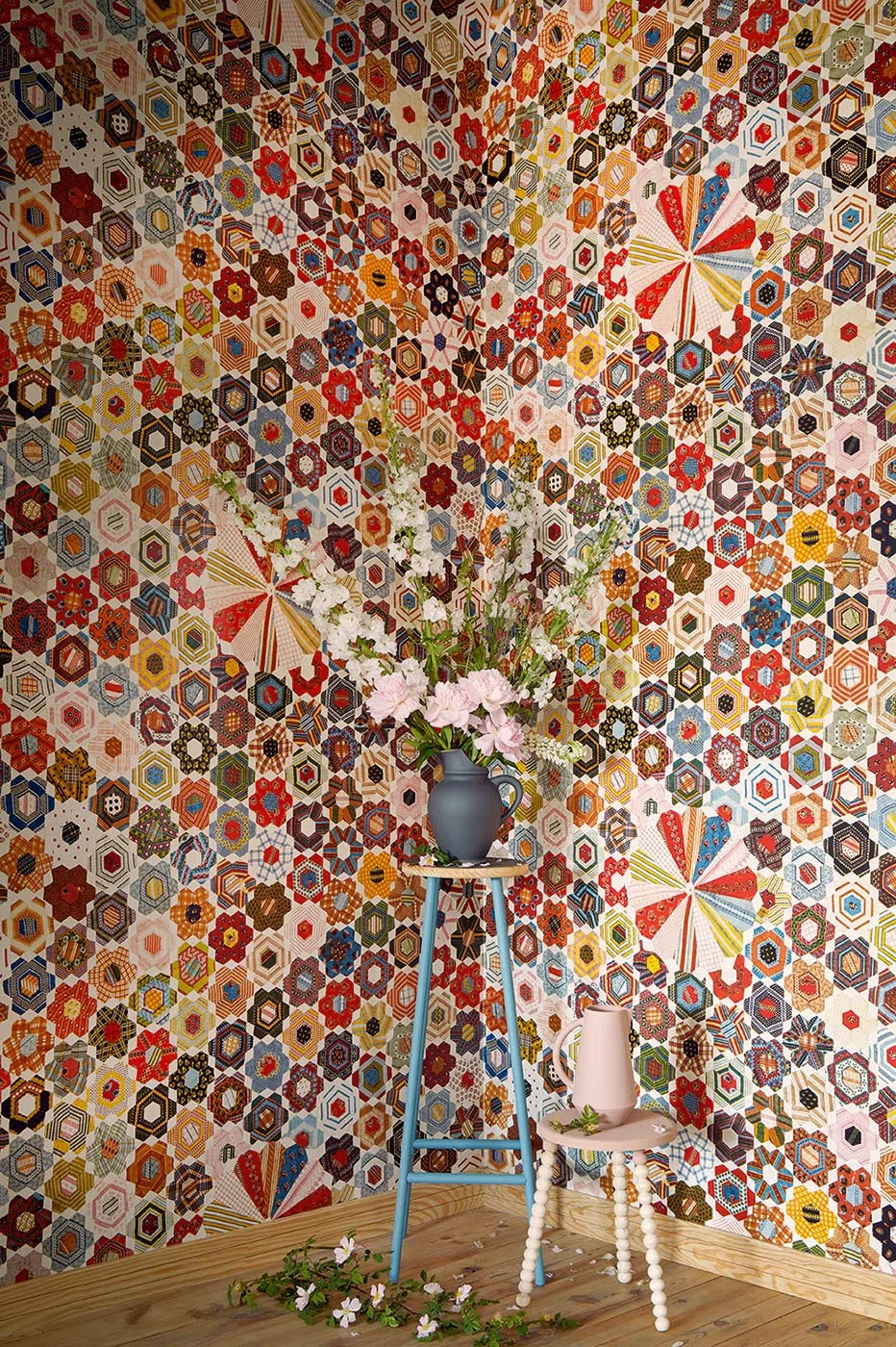 Эти обои, сделанное из собранных лоскутов ткани, является популярным покрывалом в скандинавских странах. Этот узор взят из старинного лоскутного одеяла. Настоящее чудо!