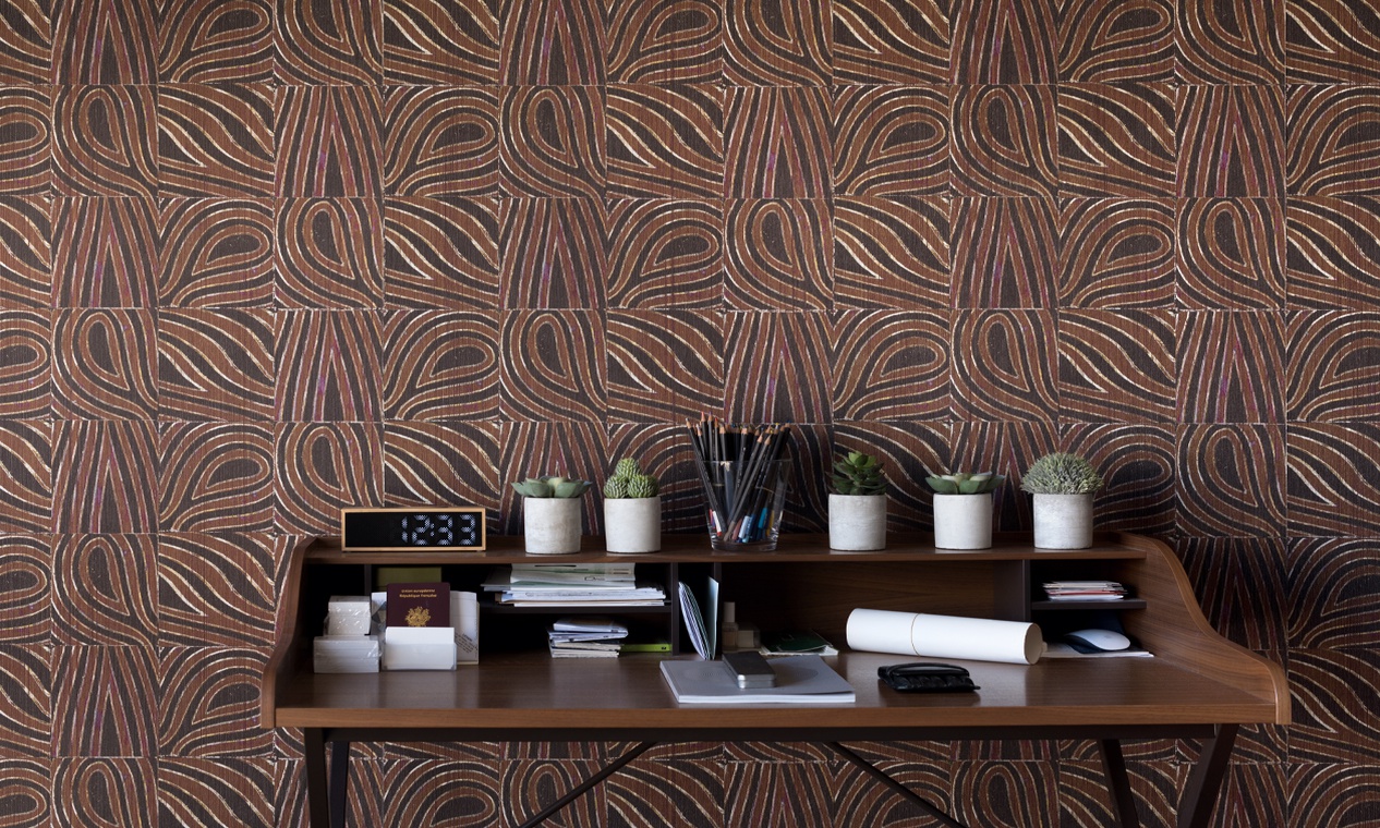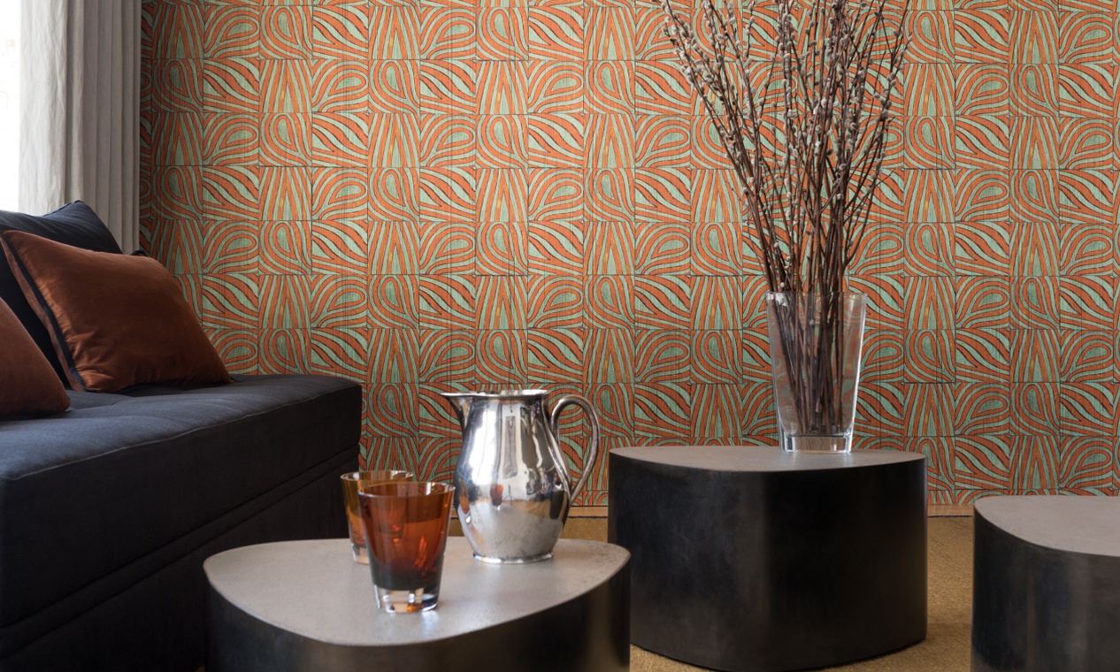 Обои Bobale от Elitis из новой коллекции Pop collection. При создании этой серии покрытий авторы вдохновлялись дизайном 70-х: внушительный цветочный узор гармонично дополняют сплошные цвета. Союз природы и красильного ремесла позволяет легко почувствовать, как этих полотен касалась рука артиста.