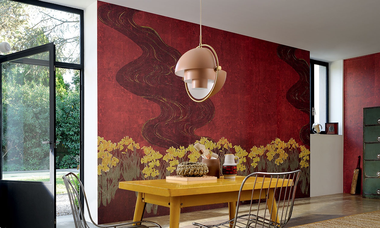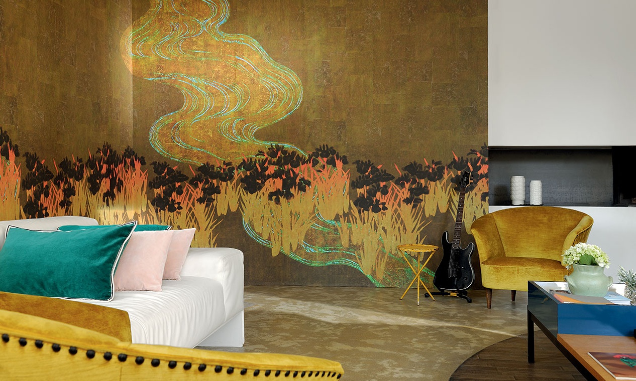 Мир находится в вечном движении. Традиционно печатаемые на японских кимоно мотивы: птицы, ирисы, сакура в цвету, играющие в речной воде рыбы находят новый приют в оформлении стен. Комната будто оживает вместе с ними, наполняясь мягкостью изысканных восточных оттенков. Мы — часть бесконечной истории, и великолепие японских панорам подчеркивает это.