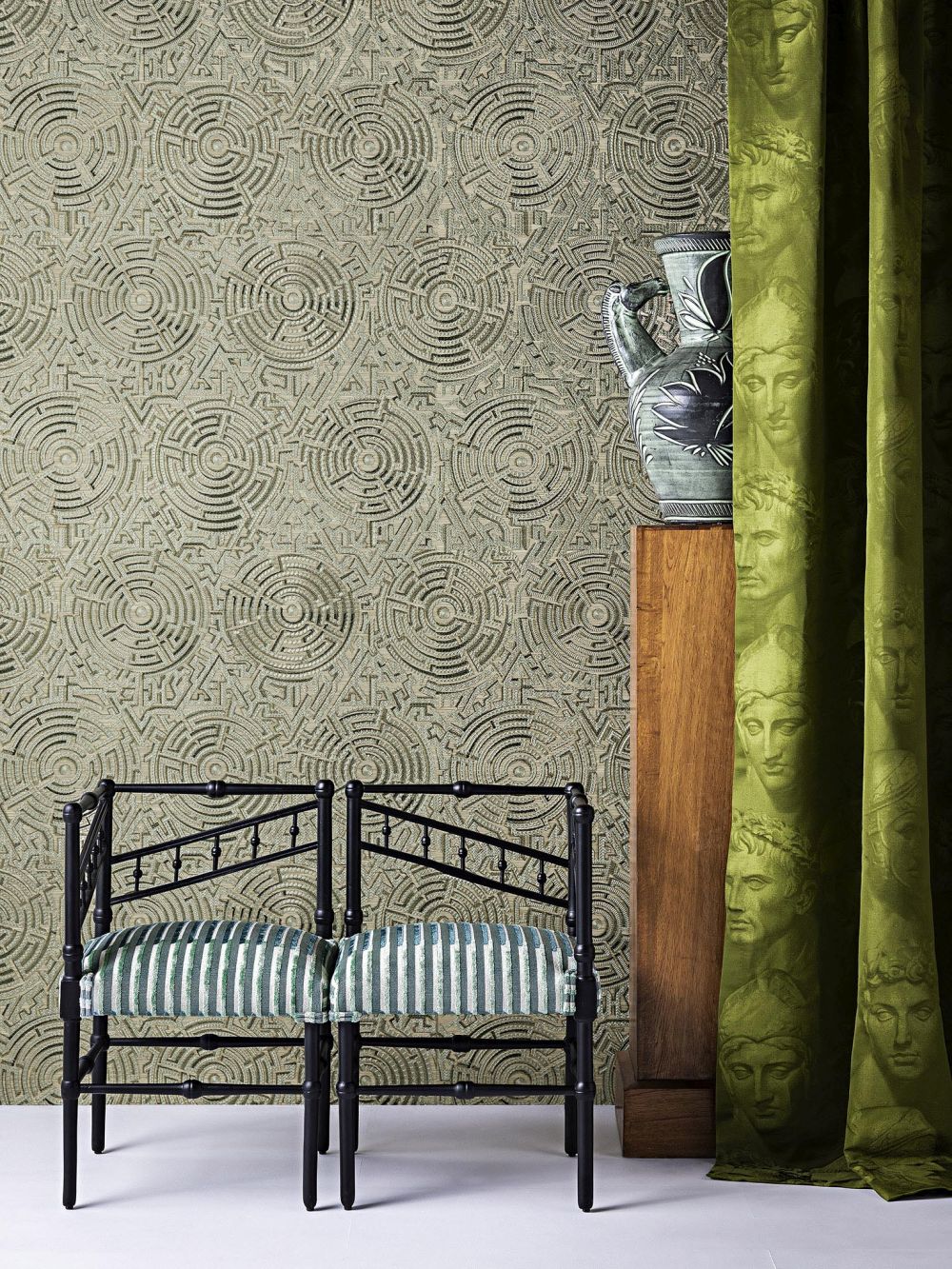 Мотивы коллекции The Cult of Beauty Collection прославляют неоклассическую или бруталистскую архитектуру, сады и пейзажи, собачьи портреты и отсылают к иллюзионистским работам или сюрреалистическим вечеринкам. Задуманная как коллаж цветов, фактур и фантазий, коллекция обоев и ковров «КУЛЬТ КРАСОТЫ» представляет собой дерзкую изысканность ... как новый золотой век декора.