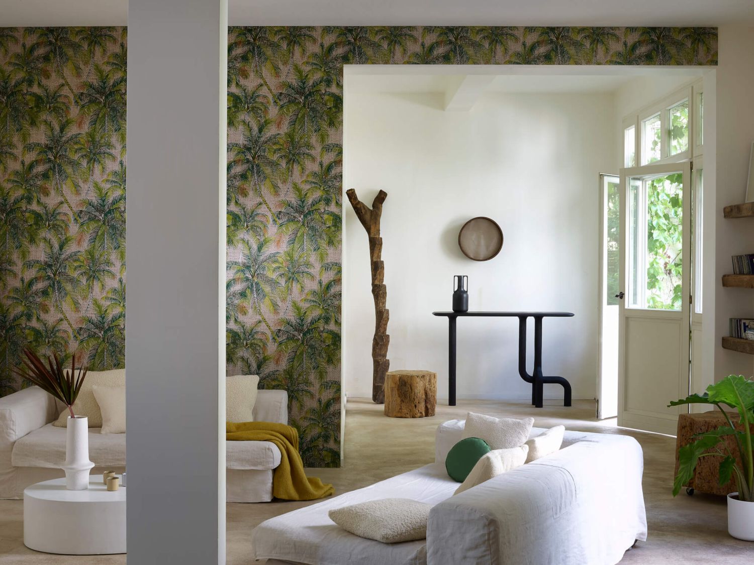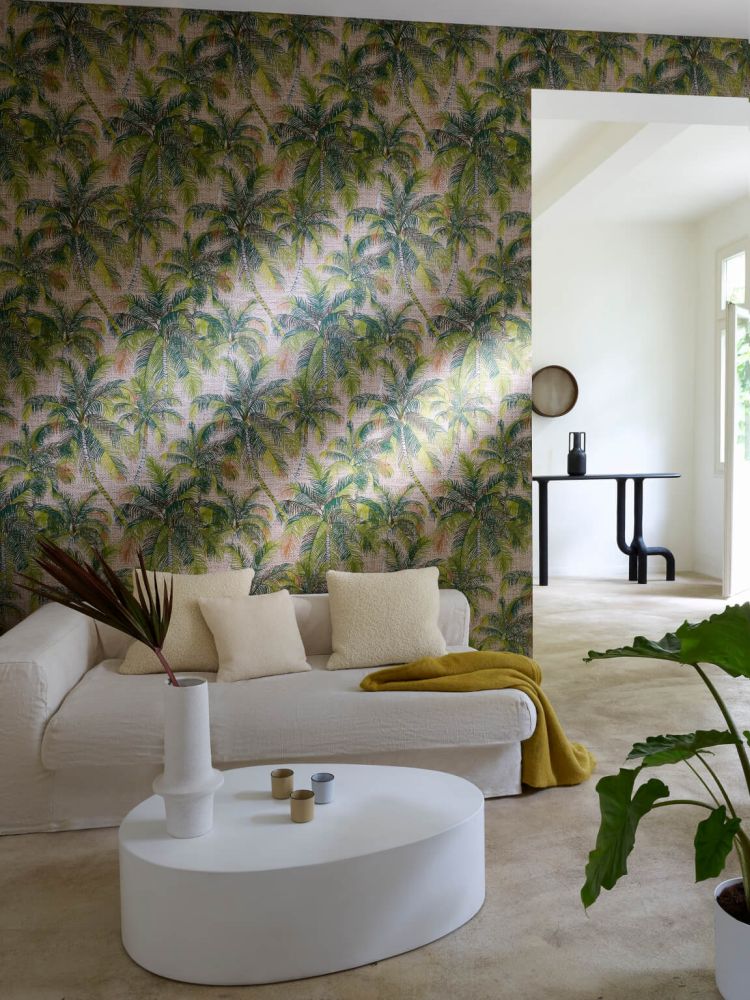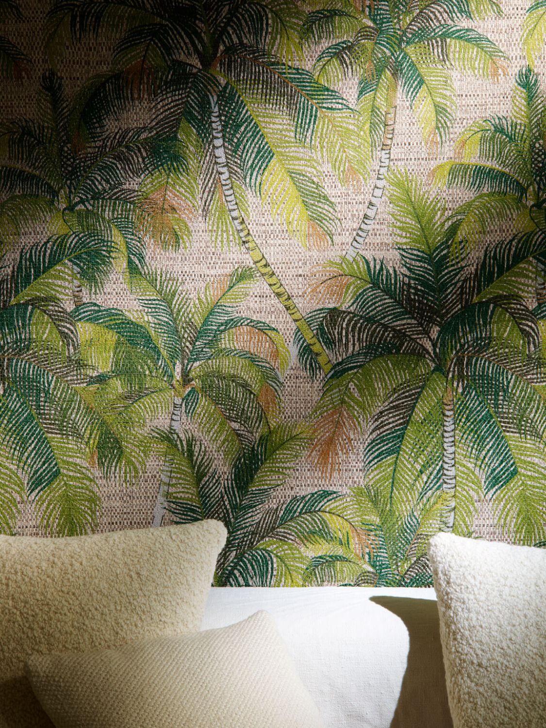 Созданные в память о поездке во Флориду, эти зеленые пальмы из Тампы словно танцуют на стене. Обои напечатаны на тисненом виниле с плетеным ремесленным видом и имеют матовую или переливающуюся отделку. Четыре цвета.