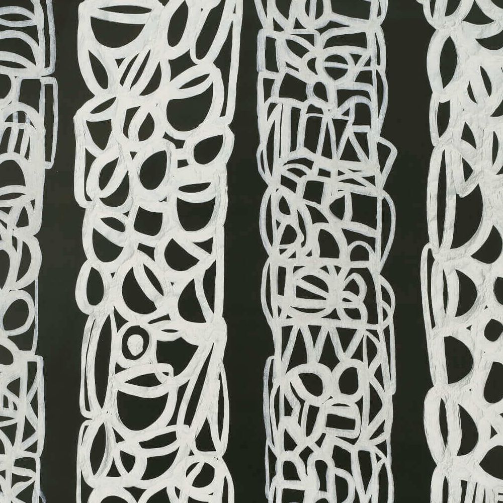 Тотем - это своего рода манифест, в котором изобразительный язык Кристиана Астугевиля приобретает полное значение. Художник разработал то, что он называет «воображаемым письмом», и продолжает развивать его. Он смешивает фигуративные элементы, представляющие символы цивилизации - объекты, амфоры, щиты - с более абстрактным графическим стилем. Он распространяет это письмо на рулонах кальки в вертикальной композиции, используя индийские чернила и толстую кисть.