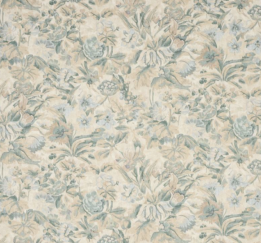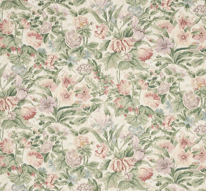 Этот красивый атмосферный принт предлагает мягкую тональную интерпретацию, вдохновленную старинным источниками, напечатанным с помощью блочной печати. Многослойные текстуры и тональные оттенки умело прорисованы, чтобы передать тонкость и глубину оригинала. Повсюду растут розы, ирисы, лилии, образуя богатый гобелен тонко нарисованной флоры и фауны.