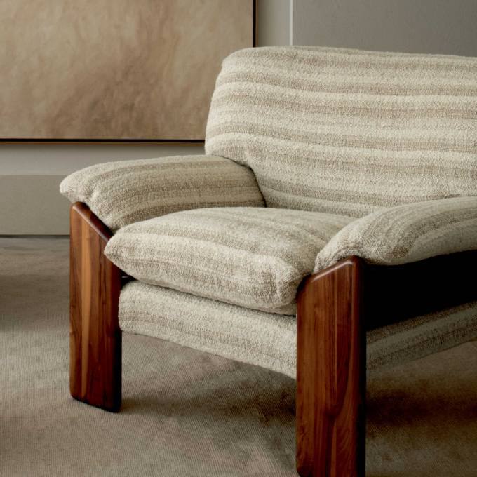 Преимущественно льняное плетение, сформированное тонким эффектом нерегулярных текстурированных полос.