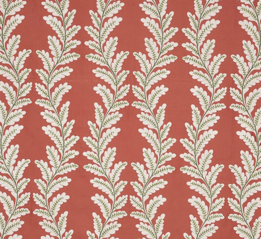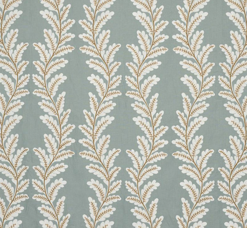Clement демонстрирует простой и элегантный узор, очарование которого основано на контрасте текстур пряжи и техники вышивания. Большие кремовые листья вышиты шерстяным тамбурным швом на фоне более мелких, тонко прошитых листьев контрастных цветов. В основе каждой цветовой гаммы лежит насыщенный цвет льна, что придает дизайну глубину и теплоту.