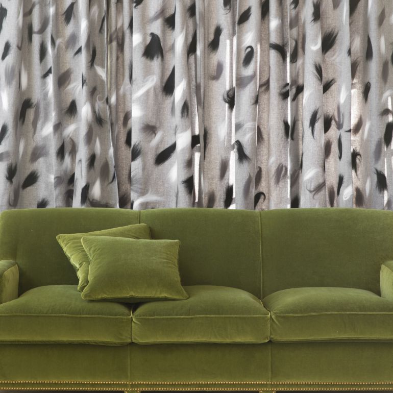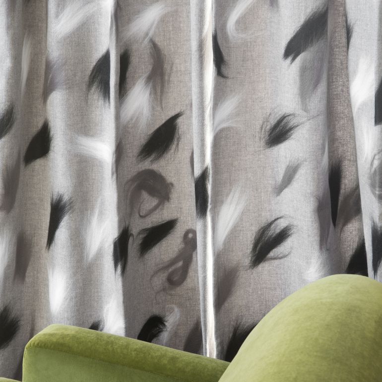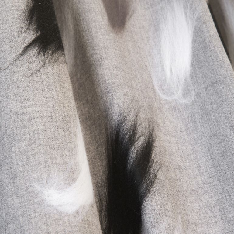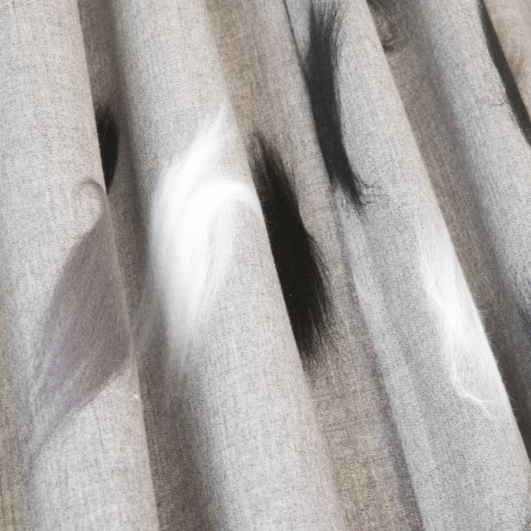 Ткань для штор Virevolte из новой коллекции текстиля Creations Metaphores. На шерстяной фланеле облака пряжи проецируются случайным образом и фиксируются иглопробиванием.