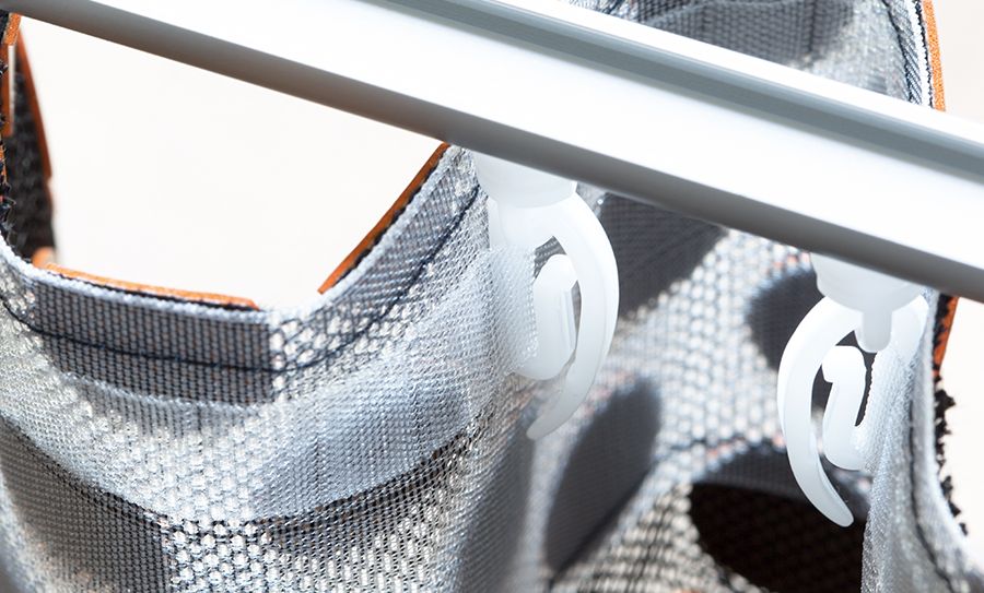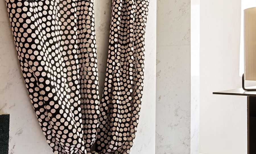 Ткань для штор из новой коллекции Figure libre 2018 года. Волна точек, приклеенных к тюлю, придает этой ткани вибрирующую прозрачность.