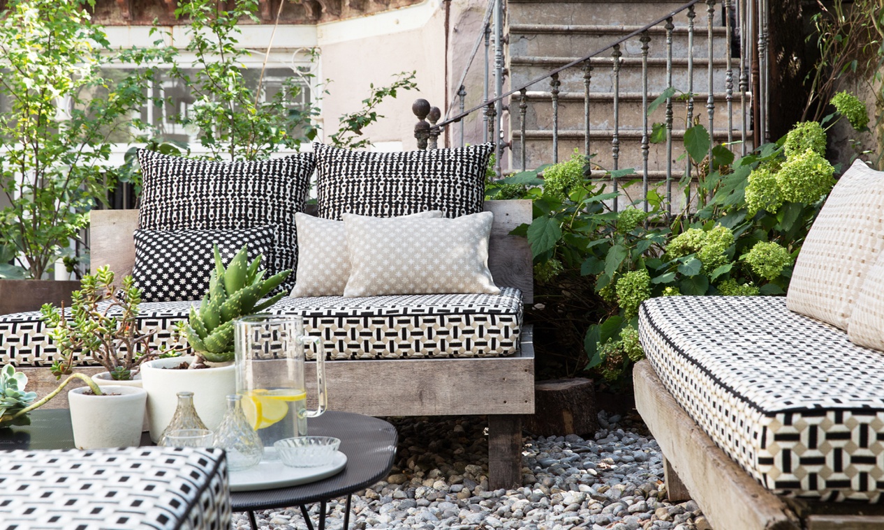 Ткань Sarnico от Elitis из новой коллекции Farniente collection. Коллекция сочетает в себе исключительно техническое волокно с удивительными характеристиками и совершенно естественным внешним видом. В винтажном духе геометрические узоры прекрасно сочетаются с новым богатым, льняным текстилем, выполненным вручную.