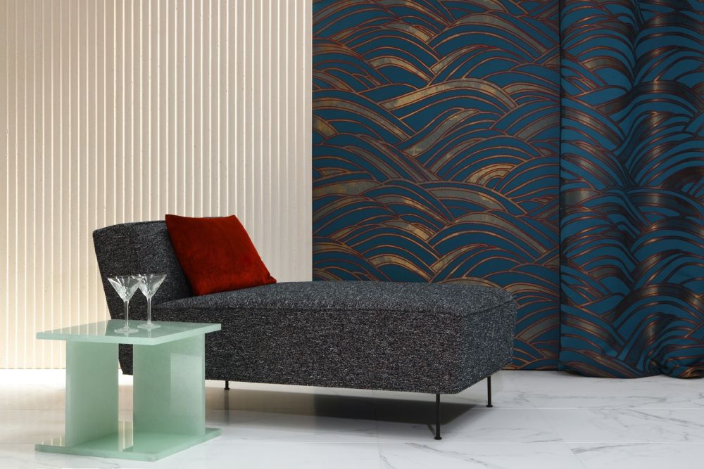 Ткань Duomo от Lelievre из новой коллекции текстиля 2019 года. Contract 24 collection - это ночь в венецианском дворце. Время стоит на месте, тяжелые двери открываются, чтобы открыть гордые прямые колонны из серого мрамора, бронзовые фрески с белым лепным орнаментом и терраццо, усыпанный драгоценными камнями.
