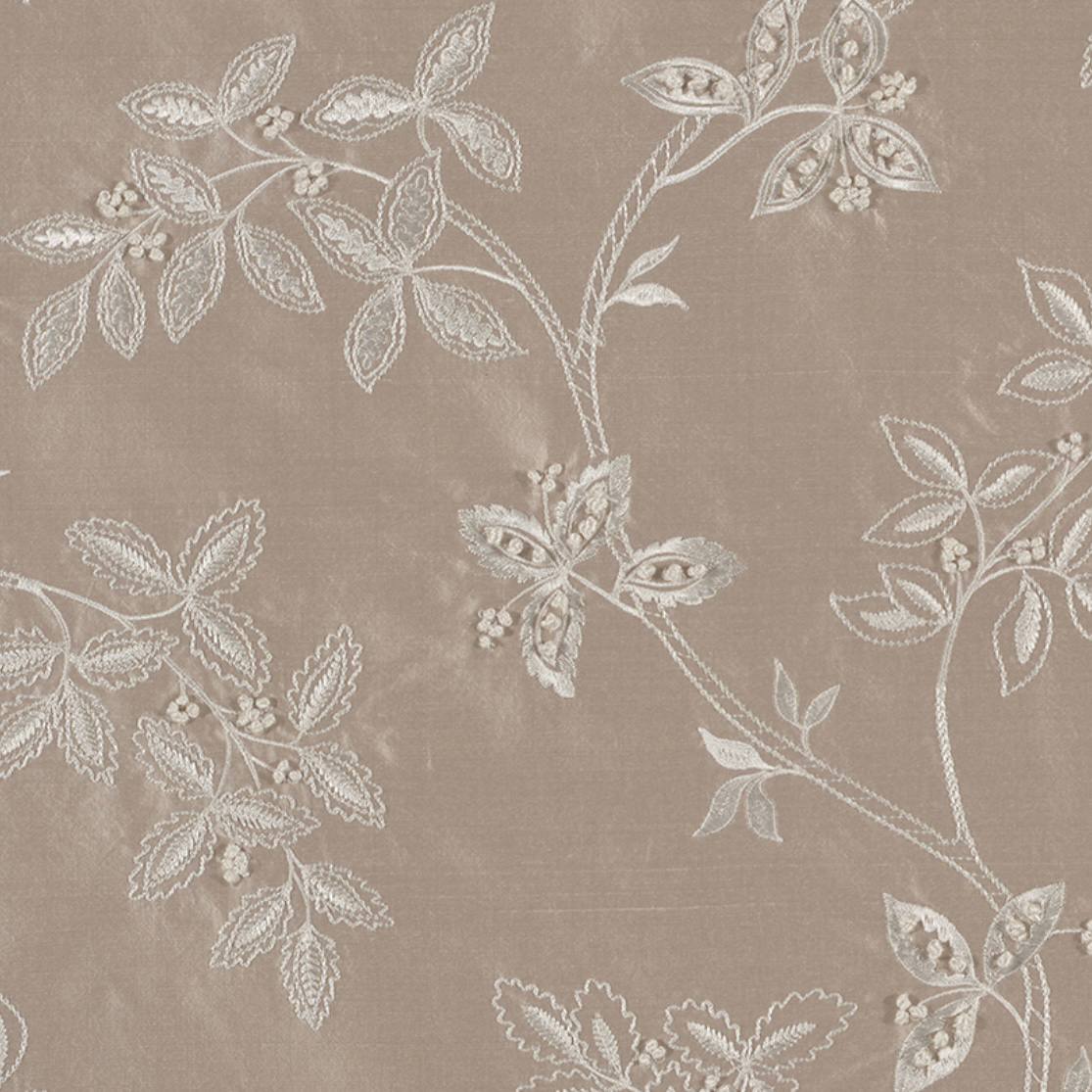 Нежный цветочный дизайн на чистом шелке с вышитыми вручную французскими узлами. Trailing Tree вдохновлен шелковым принтом 17-го века. Этот женственный дизайн имеет невероятный блеск, которым так славится шелк, и является роскошным выбором ткани для многих интерьеров.